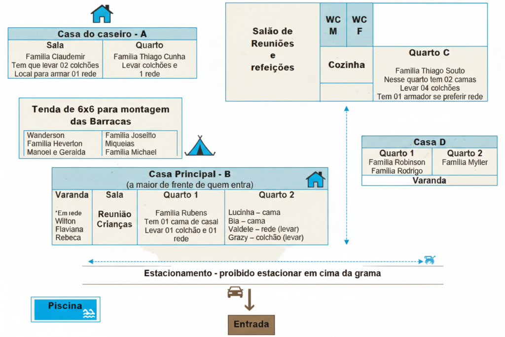 - Cada um é responsável por lavar e secar seus utensílios após as refeições, que deverão ser guardados individualmente durante todo retiro;